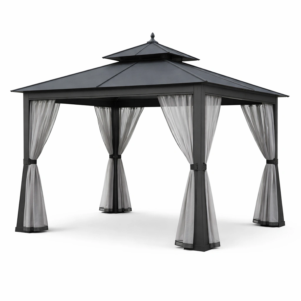 Gazebo de jardín de aluminio con techo de acero negro