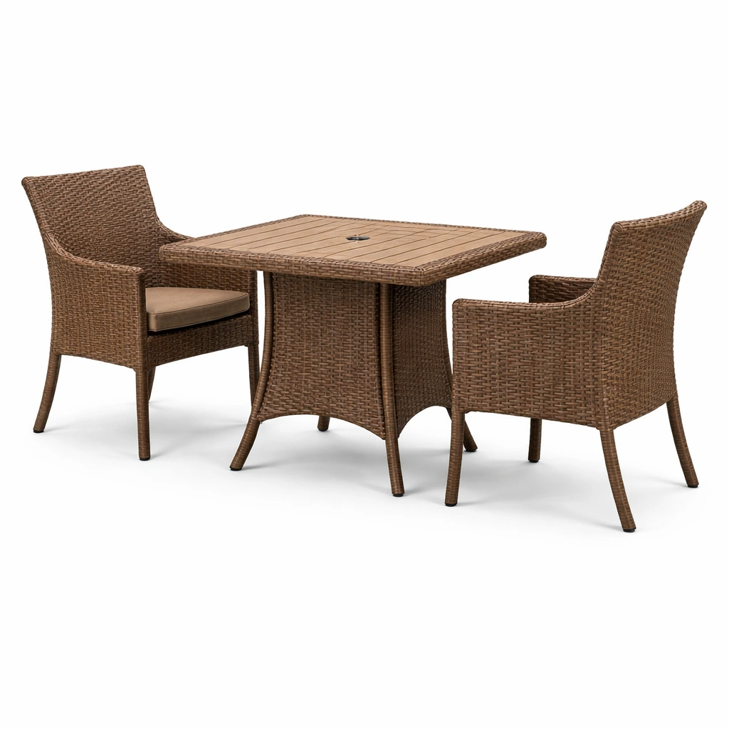 Juego de comedor exterior de ratán sintético marrón con cojines de poliéster