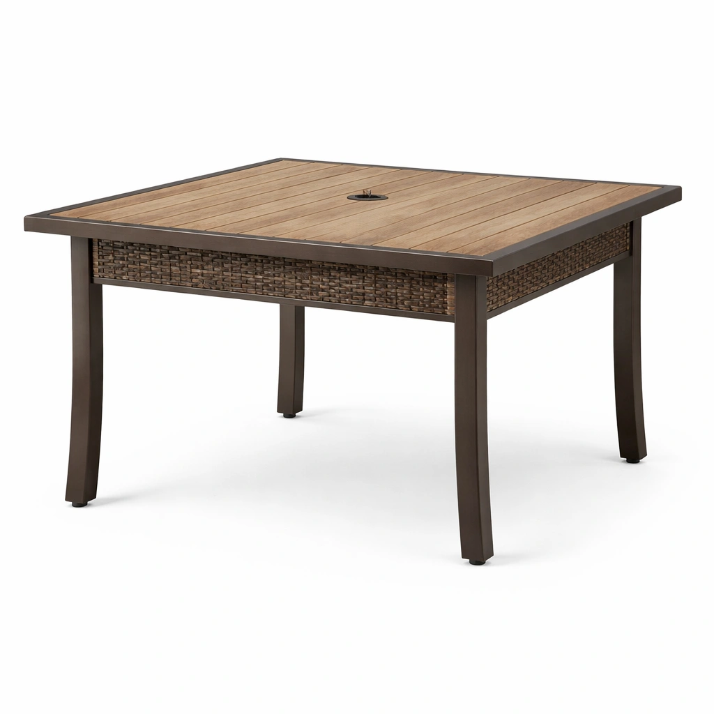 Mesa de comedor exterior cuadrada de madera y aluminio 90x90x75 cm marrón