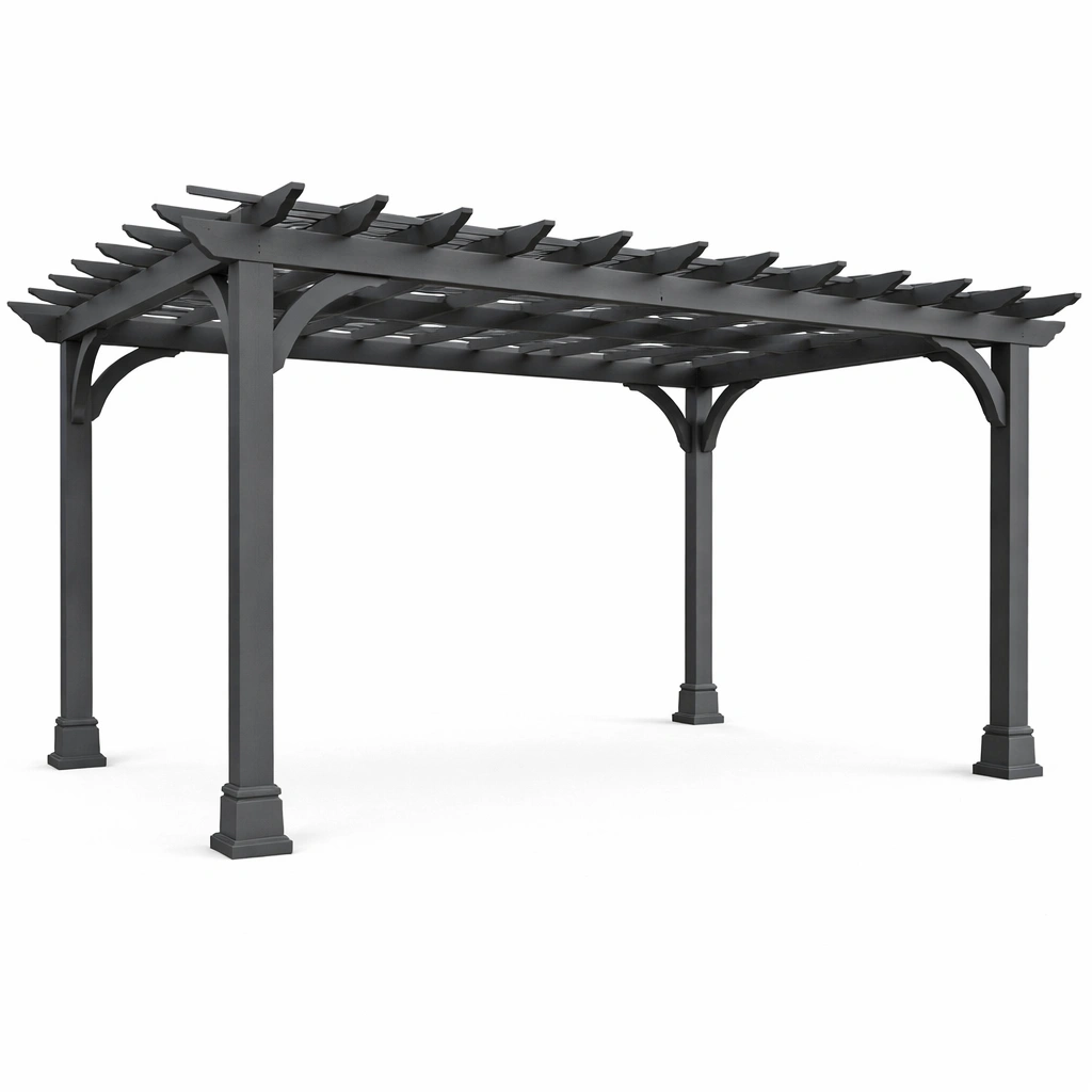 Características estructurales: Forma rectangular con postes de soporte y vigas superiores.
